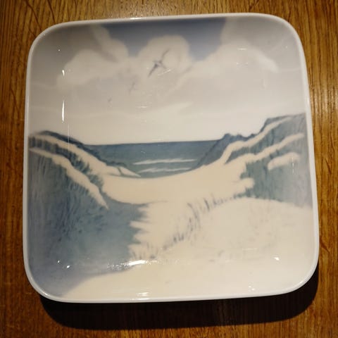 Millhouse Odder dekorative tallerkener i blå og hvid porcelæn med motiver fra årene 1977 til 1989. Tallerkenerne har forskellige landskabs- og bymotiver og er velegnede til samling eller dekoration. Hele serien