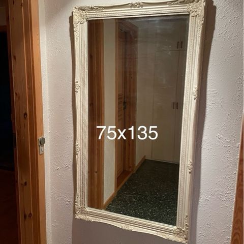 Flot spejl, som passer ind i de fleste hjem. Træværket er lakeret. Kan både hænges op og stå frit på gulv. Afhentes fra Bagsværd. Sælges billigt, fordi lejligheden skal tømmes ifm. udflytning.