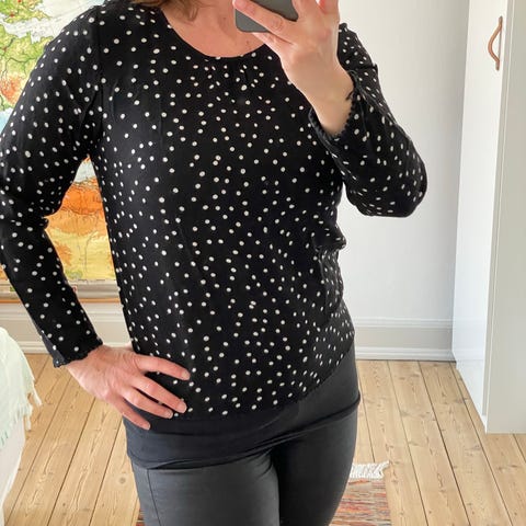V-hals og med blød og strækbar ærmekant i ribstruktur.