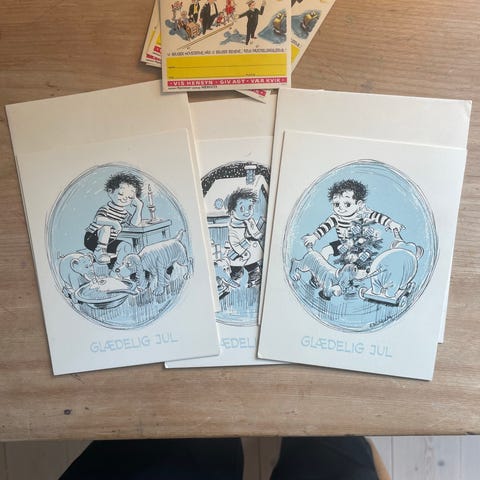 Panorama med 6 Julekort fra Familie Journalen Julen 1991 sælges. Tegnet af Karen K. Fast pris. Stand fremgår af billederne.