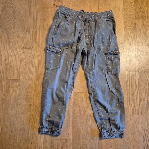 Bukser str. 116 og blusen 110/116. Bukserne og brugt mere, og derfor er de ikke lige så kraftige i farven, deraf prisen.
