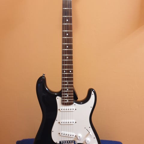 Jeg sælger min Squier Sonic Stratocaster, da jeg simpelthen ikke får brugt den. Den er købt i 2023 fra Thomann og er højest brugt en håndfuld gange.