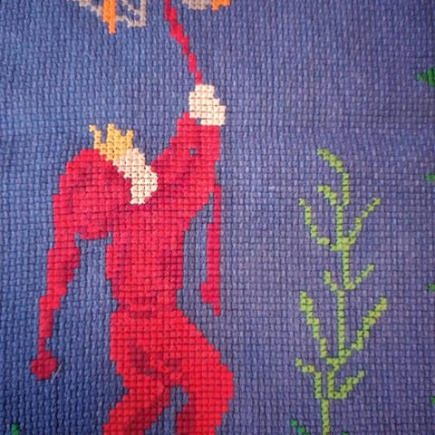 Broderet jule løber med nisser