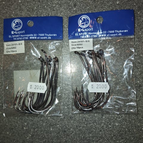2 æsker med hver 1000 stk. kroge.