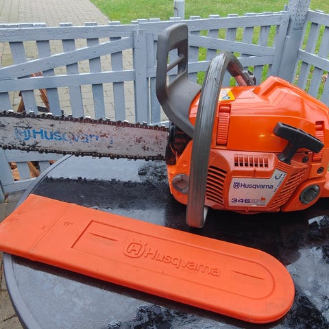 Saven som er stærk, har 45 ccm, og 3 HK. Den leveres med et nyt 14" sværd, og ny kæde.