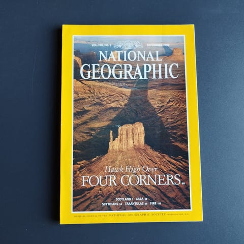 National Geographic Magazine. Engelsk. God stand. Forsiden af bladet viser en del af indholdet.