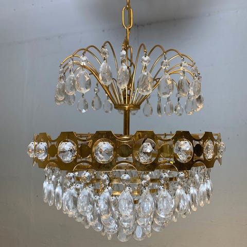 8 armet lysekrone i patineret messing