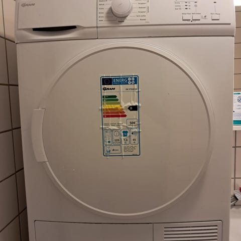 Årligt energiforbrug 504 kWh (baseret på 160 normale tørringer ved programmet bomuld skabstørt ved fyldt og halv maskine.