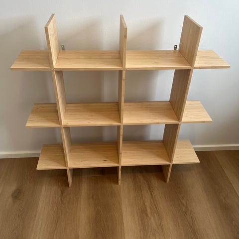 Kirsebær farvet væg reol, kan hentes kvit og frit 15. januar.
