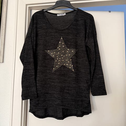 Flot sort bluse med lange ærmer i behageligt materiale - med stjerne - UBRUGT