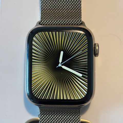 Jeg sælger mit Apple Watch Series 6 i 40 mm. Modellen understøtter både GPS og mobildata (cellular). Uret er i rustfrit stål (stainless steel), og farven er guld.