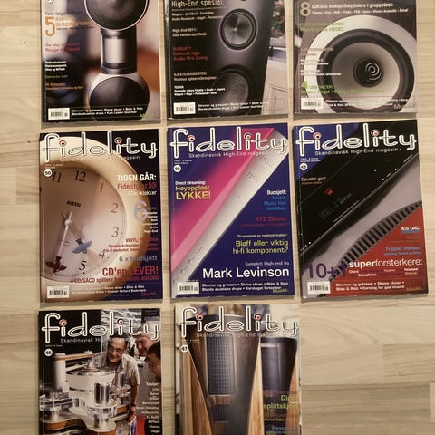 Higher Fidelity bog med fokus på lydudstyr og højttalere. Indeholder information om mærker som NAD, Denon, Thule Audio, Classe, Lyngdorf Audio, DALI og B&O. Bogen beskriver forskellige aspekter af højttalerteknologi og lydoplevelser.