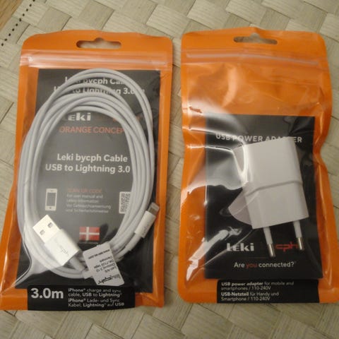 Nyt og ubrugt oplader + originalt Apple kabel