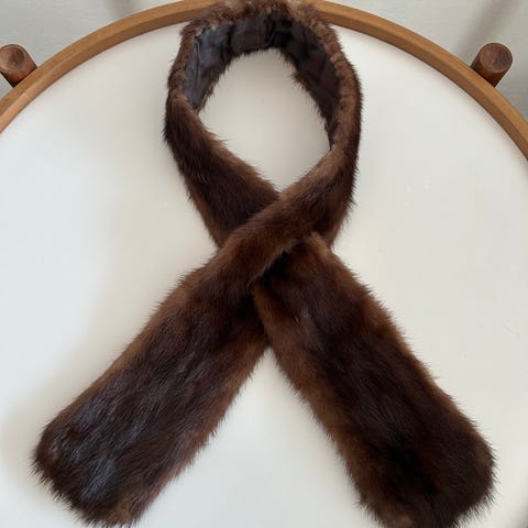 Andet, Minkkrave, Ukendt, str. 83 cm lang, Brun, Mink, God men brugt, Flot vintagekrave.