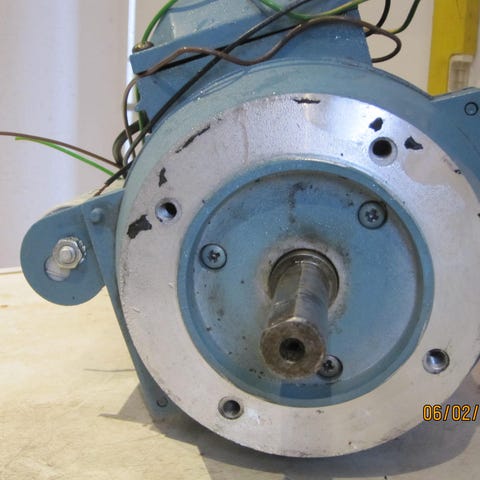 ABB Motors med gennemgående aksel. MT90L-F115-4. V 230 . Hz 50. r/min 1320. kW 0,9. A 6,0. Aksel ø. 14 mm yderst (længst fra motoren) og 15mm tættest på motoren, i den ene ende og 19 mm i den anden ende. Diagonal mål på monteringshuller ca. 114 mm