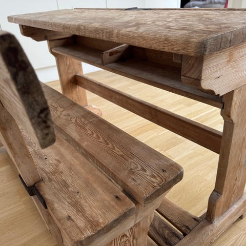 Retro, svensk, vintage, gammelt skolebord, børnebænk, egetræsbænk, børnemøbler, snedker, svensk møbelsnedker, pult, skolepult