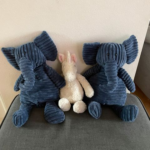 En sød hval- bamse. Har kun stået til pynt. Jellycat.