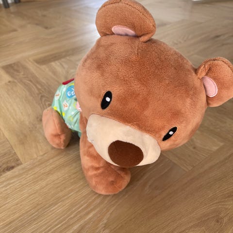 Kravlebamse siger lyde, tal og farver når du trykker på de forskellige farver på ryggen.