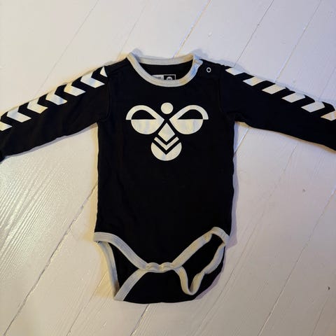 Grå, kortærmet body fra Hummel. Logoet er krakeleret en smule, men bodyen fremstår i god stand.
