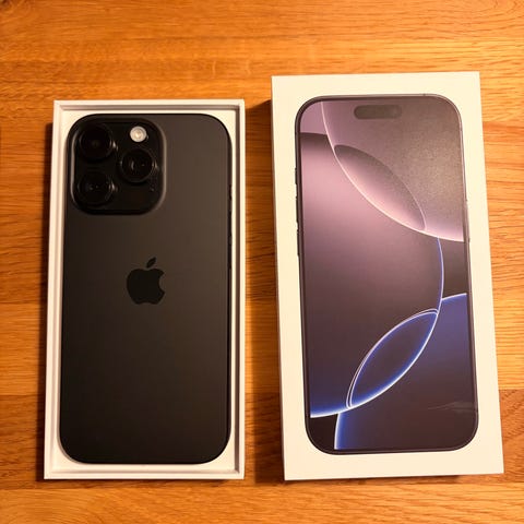 Apple iPhone 16 Pro med 256 GB lagerplads. Telefonen blev taget i brug lørdag d. 6/12/25, da jeg fik omskiftet den til en helt ny efter reparation.