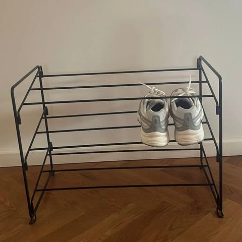 Velholdt og funktionel skoreol med 3 gode “rum” til sko.