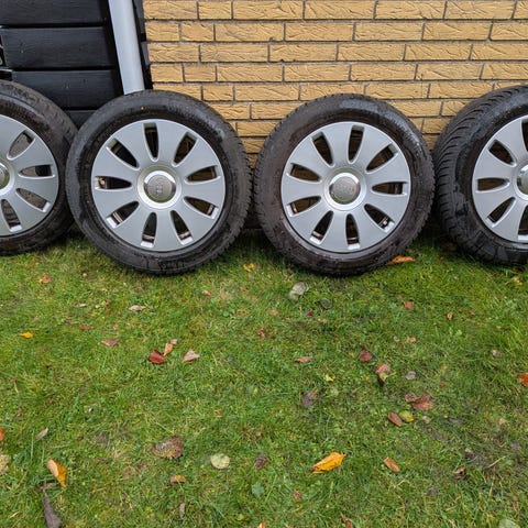 Opmærksom…!!! Original-Audi-fælge med Michelin vinterdæk Alpin brugt kun en sæson. Den fælge passede kun model fra 1994 til 2000 til Audi. Fælgene har lidt snavs men intet fejl.