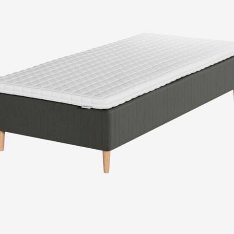 Sort dobbelftjedret boxmadras med topmadras som på billede. 90x200. Sælges uden ben.