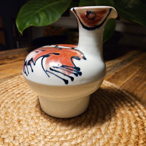 Smuk kande med korkprop fra Tue Poulsen med teksten 'Eddike'. Er i fin stand, ingen afslag. Stemplet i bunden. Mål: 19 x 9 cm.