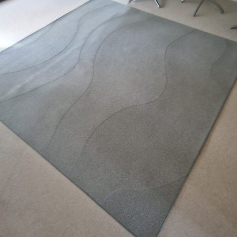 Ege tæppe. Rigtig fint tæppe i grå - Epoca Ribs - uden slidspor eller bordmærker, tæt på at være som nyt. Røgfrit. Nypris 5500,- + moms. Levering på Sjælland kan evt aftales. Gratis inden for 50 km fra mig.