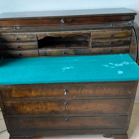 Nederste del med skriveplads, udtræksplade, grønt læderfelt