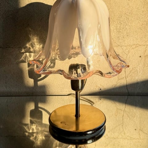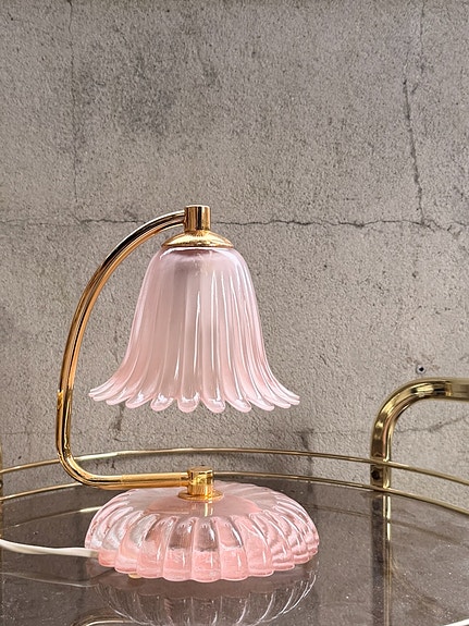 Stor flot rosa vintage Murano mushroom lampe. Bemærk den smukke kant, som er afsluttet helt vildt flot.