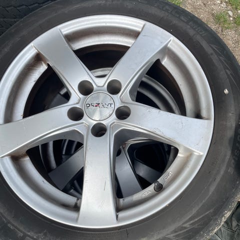 Dæk og fælge der har siddet på en Citroen Jumpy Van. 5 mm mønster.