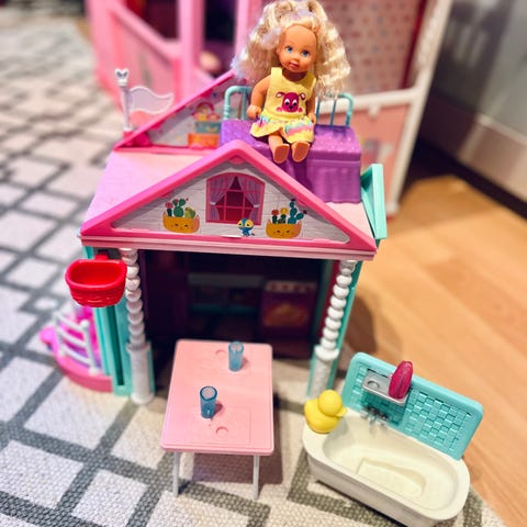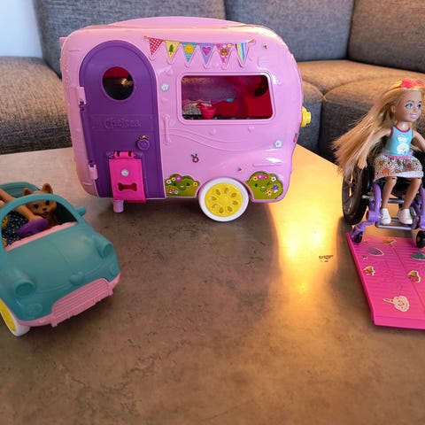 Barbies yngste lillesøster Chelsea, har sit eget minihus og har inviteret sin veninde hjem og lege. De skal bowle, lave skumfiduser, gynge og hygge med hunden.