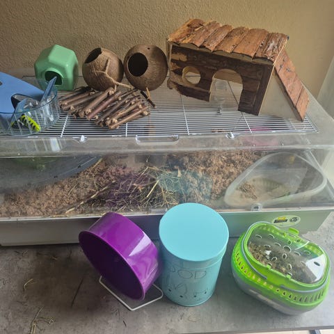 Hamsterbur med tilbehør samt Guldhamster