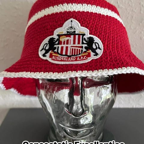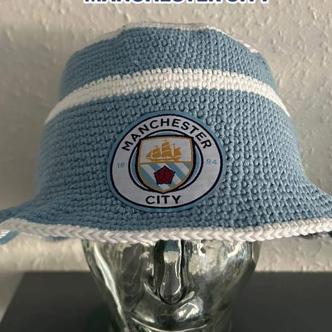 Hæklet Manchester United bøllehat efter egen opskrift og design. Fast pris kr. 300.