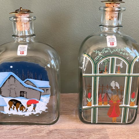 Holmegaard apotekerflasker i glas med etiketter og propper