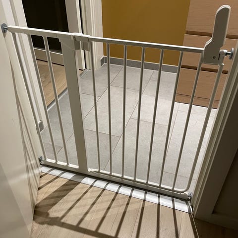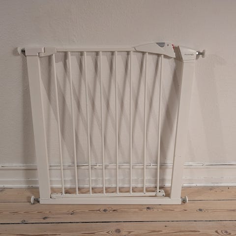Smart Børnegitter der kan holde den lille ude af fx køkkenet. Sættes på dørkarmen og er utrolig stabil.