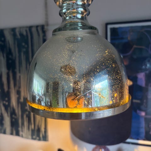 Smuk loftslampe i glas designet til vintage stil også i selve glasset.