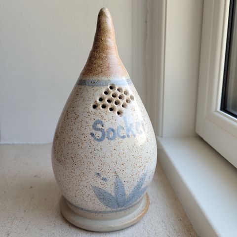 Hvid - Dueblå himmelblå lyseblå splatter, (sjælden- ikke ofte udbudt farve kombi) Kategori Pottedame Pottemand