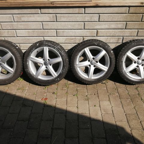 4 styk brugte originale VW fælge, med Continental WinterContact TS870, med masser af dækmønster tilbage (>6mm).