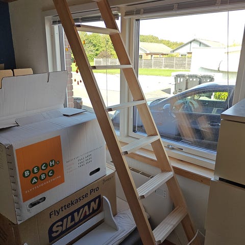 Flot ny udtræks hemsestige fra EW m. 11 trin i fyrtræ og hvide vanger. Længde 2,4 m. Udslået højde ca. 2,2 m. Nypris: ca. 5000 kr. https://ewlofttrapper.dk/hemsestiger/hemsestige-nr-10-lux-incl-udtraeksbeslag/