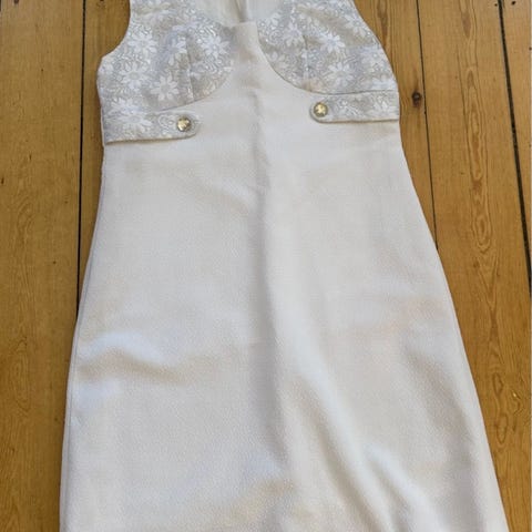 Super fin hvid kjole med blonde stof og halter neck dyb udskæring foran