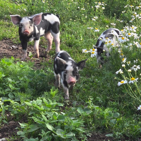 Økologiske smågrise (10 stk.) af sortbroget dansk landrace, med stamtavler og har halstitter. De er berettiget til tilskud (bevaring af husdyrgenetiske ressourcer). De bor i en stald hvorfra de frit kan gå ud på marken, er vant til at blive kælet af vores børn og til strøm hegn.