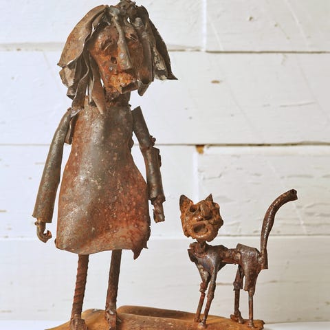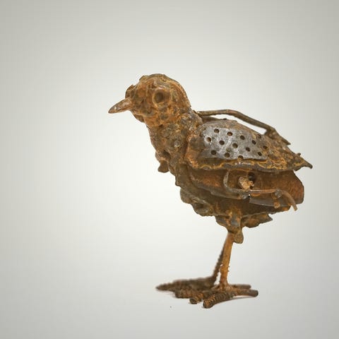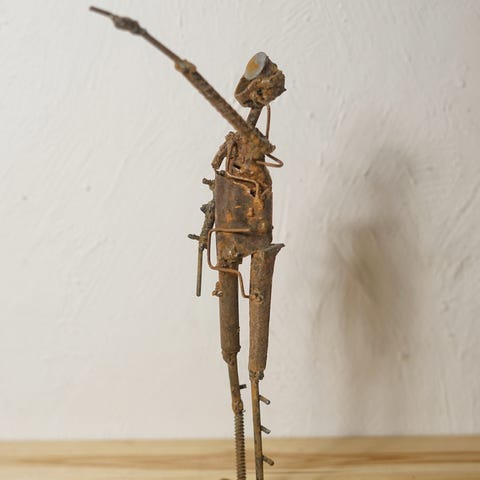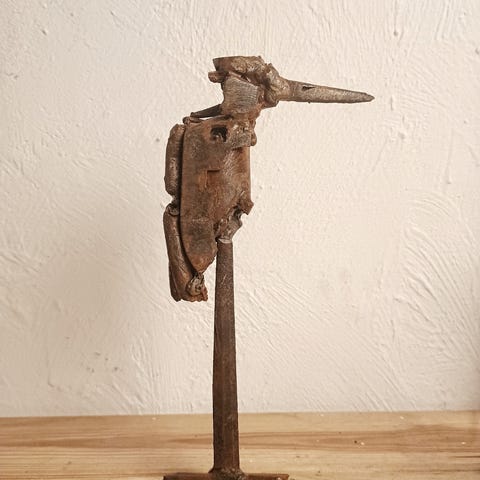 Unika skulptur skabt i skrotmetal, højde 13,5cm - kunstner Søren bækkel 2025 - se mere af mit arbejde på www.metalkunstneren.dk