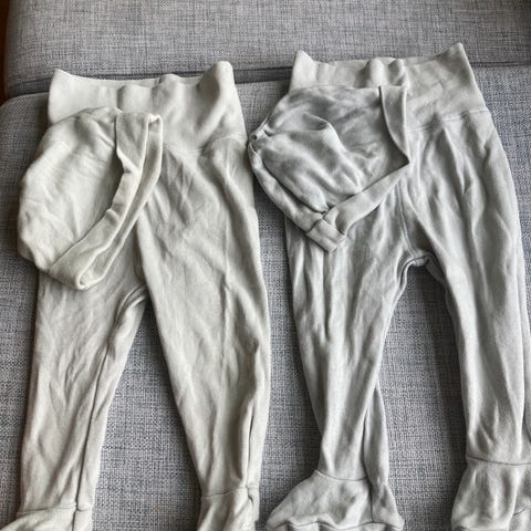 2 strikkjoler i bomuld i lyse og mørkegrå farver i str 86. På den lysegrå er der i lille gul plet, som muligvis kan fjernes, den er ikke meget synlig.