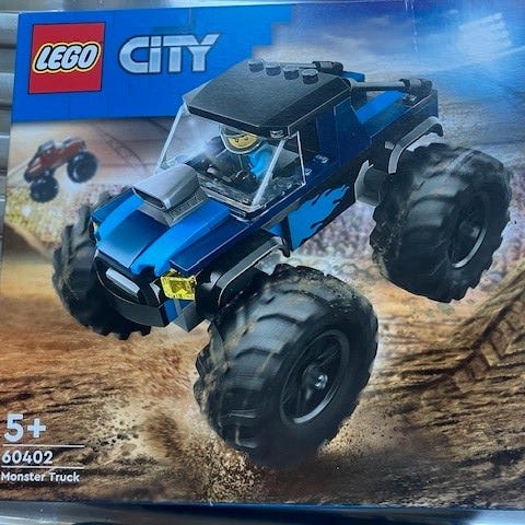 Komplet sæt med alle klodser, 5 minifigurer og alt tilbehør. Inkl specielle magnetklodser så monstertrucken kan stikke af med bankboksen.