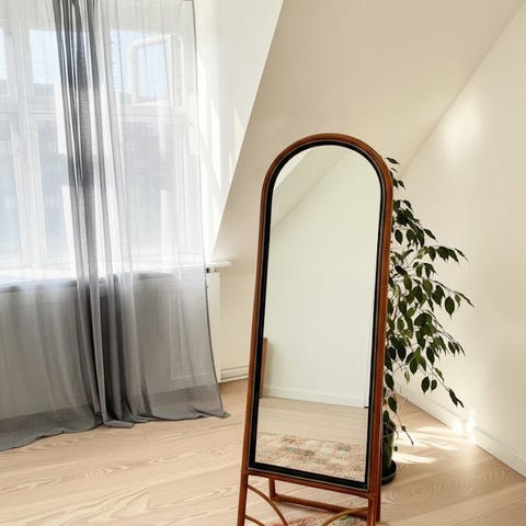 Gammelt træspejl fra midten af 1900-tallet, reproduktion af barokstilen. Vintage træspejl.