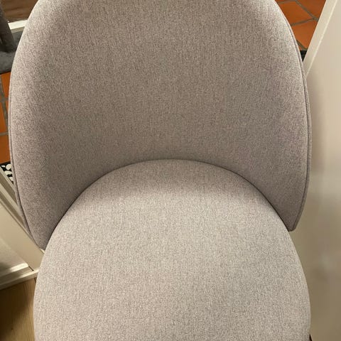 Kokkedal skrivebordsstol lysegrå med hvide ben, nypris 800 kr. i jysk, den er 4 mdr. gammel , næsten ikke brugt og står derfor som ny
