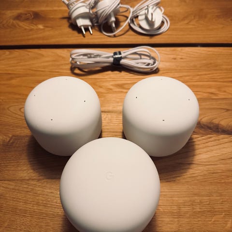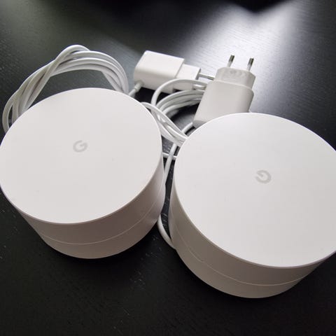 Google Nest Wifi Router model H2B, WiFi Point samt 3D printet beslag til vægmontering af WiFi Point. Inkluderer strømadapter og netværkskabler. Virker fint og har ingen skader eller skrammer.