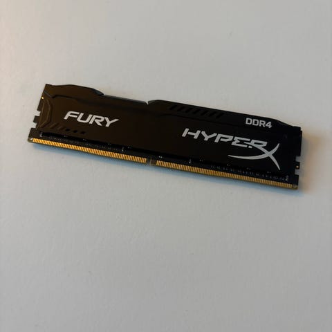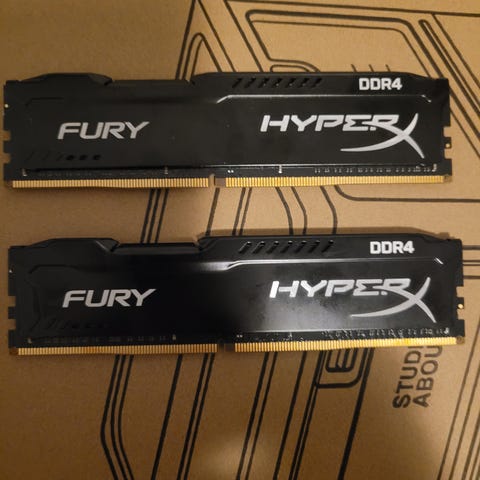HyperX Fury DDR4 RAM-moduler. To stk. RAM med sort køleplade. Designet til at forbedre ydeevnen i kompatible computere. Jeg sælger dem da jeg ikke bruger min stationære længere.